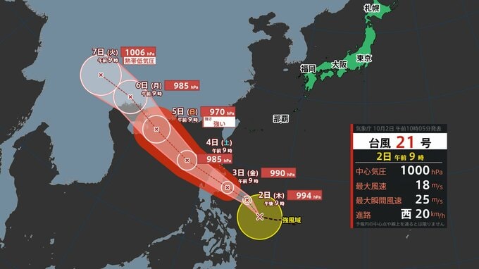 気象庁は「2日(木)午前9時にフィリピンの東で台風第21号発生した」と、発表しました。