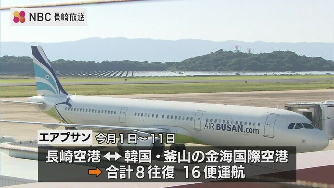臨時便を運航するのは韓国のLCC=格安航空会社の「エアプサン」で、10月1日から11日まで長崎空港と韓国・釜山の金海国際空港を8往復16便運航します。