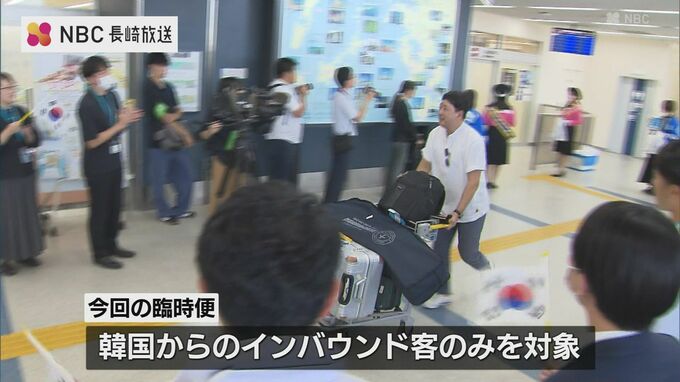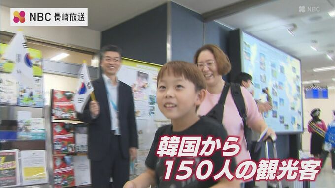今回の臨時便は韓国からのインバウンド客のみを対象としていて、1日は3泊4日のツアーで来た150人の観光客を長崎県の職員や大村フラワー大使らが出迎えました。