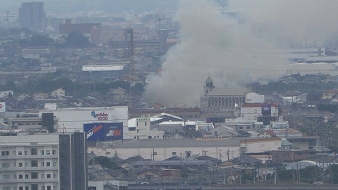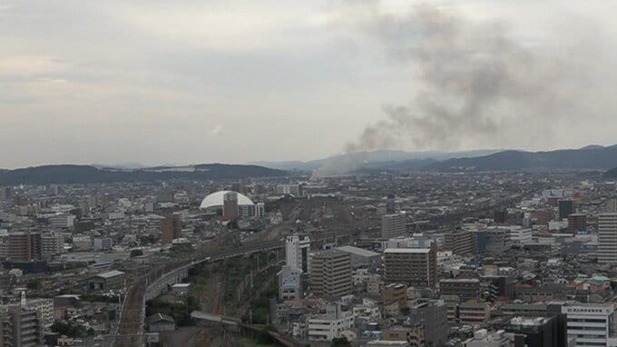 現在、岡山市消防局の消防車など18台と消防ヘリが出動しているということです。火事は午後2時23分に鎮圧していますが、まだ鎮火には至っていません。