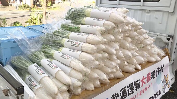 東京・練馬区で、地元名産の練馬大根を配りながら飲酒運転の「大根絶」を呼びけるイベントが行われました。「飲酒運転大根絶!」軽トラックにうずたかく積まれた大根の山。酒を飲む機会が増える年末年始に向け、飲…