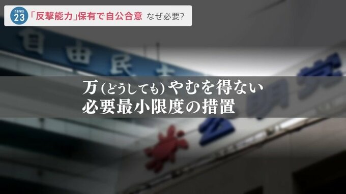 自公は「反撃能力」の“歯止め”として「万(どうしても)やむを得ない必要最小限度の措置」という表現を盛り込むことで合意しています。