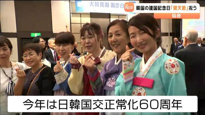 韓国の建国記念日とされる「開天節」を祝う催しが10月1日、仙台市内で開かれ、仙台の韓国総領事が「両国が真の友情を築けるように協力してほしい」と呼びかけました。仙台市内で10月1日に開かれた「開天節」を祝う…