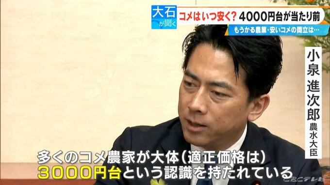 「農家の努力が報われる価格にしなければならない。多くのコメ農家が大体(適正価格は)3000円台という認識を持たれている」