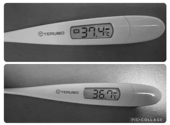 「『何だか重だるいなぁ』と思い熱を計ると 37.4度 アララ」と、発熱したことを報告。風邪薬を服用して、昼寝をしたことを明かし、「ぐっすり寝て 体温計ると 36.7度 下がったぁ」と綴っています。