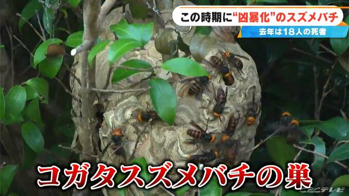 木の奥にあったのは、直径30センチほどのコガタスズメバチの巣。国内に幅広く分布し、スズメバチの中では比較的おとなしいハチだといいますが、静かにカメラを近づけると…