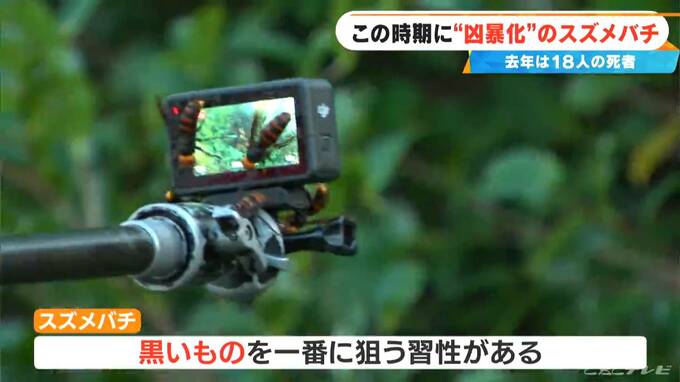 スズメバチは黒いものを1番に狙う習性があり、カメラを執拗なまでに狙ってきました。