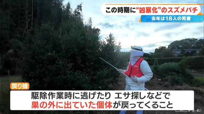 戻り蜂は、駆除作業時に逃げたり、エサ探しなどで巣の外に出ていた個体が戻ってくること。
