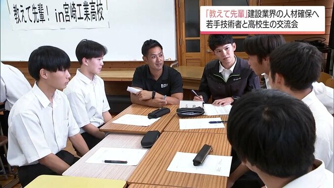 建設業界の将来を担う人材の確保や育成につなげようと、高校生と若手技術者の交流会が開かれました。「教えて先輩」と銘打って、宮崎工業高校で開かれた交流会。建築科の1年生およそ40人と、県内の建設会社の経営…