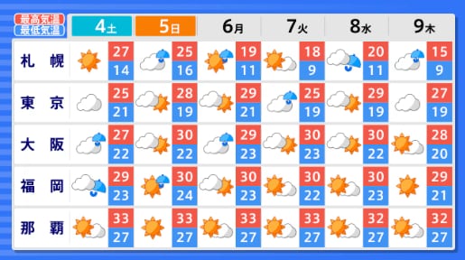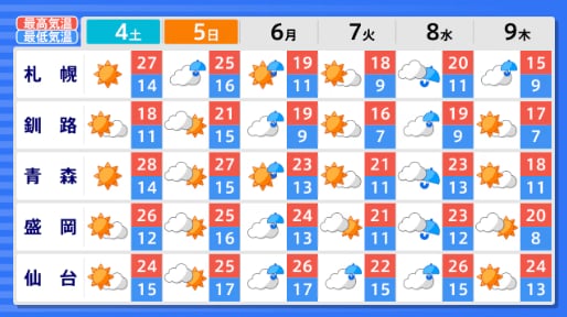 一足早く!東北地方の冬の天候の見通しは? 平均気温や降雪量はどうなる? 近年の冬の天候の特徴は? 今後の東北・全国の天気を画像で 気象庁 テレビユー山形 2025年10月2日(木) 16:16 国内 ■今後の全国の天気を画像で 画像はTBS NEWS DIG Powered by JNNより 画像ありの記事を最初から https://newsdig.tbs.co.jp/articles/-/2206107?display=1