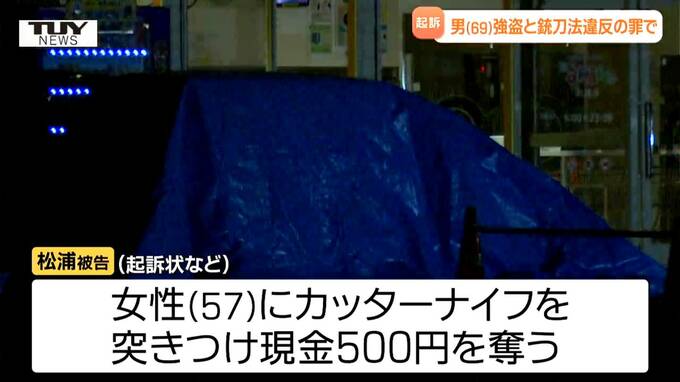強盗と銃刀法違反の罪できのう起訴されたのは川西町の無職、松浦昭一(69)被告です。