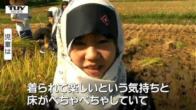 児童「こういう衣装が出回っているところがちょっとしかないらしくて着れて楽しいという気持ちと床がべちゃべちゃしていて、転んだ時にすぐしみこむからちょっと嫌だなという気持ち」