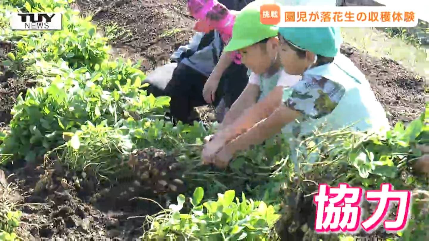 今年5月に上山市の「子供の城保育園」の園児たちが上山市の工場敷地内で種まきをし、落花生を大切に育ててきました。