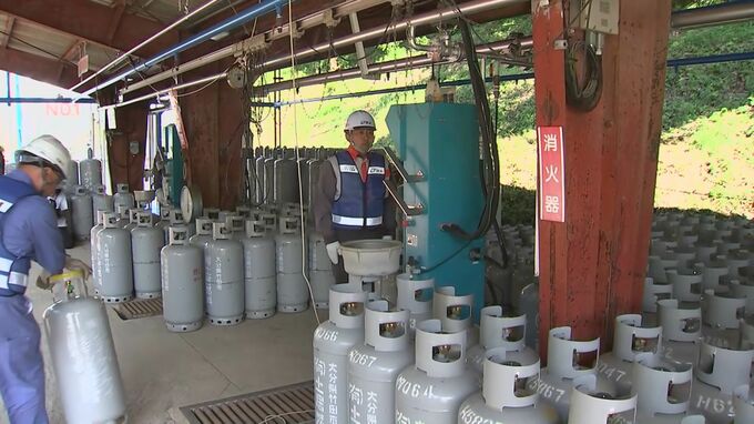 中核充填所は東日本大震災を教訓に災害に強いLPガスの安定供給を目的に、国が整備を進めていて県内に3か所あります。訓練では県内で最大震度7、竹田市で最大震度5強の地震が発生したことを想定。非常用発電機を稼働させて他の事業者にLPガスを供給しました。