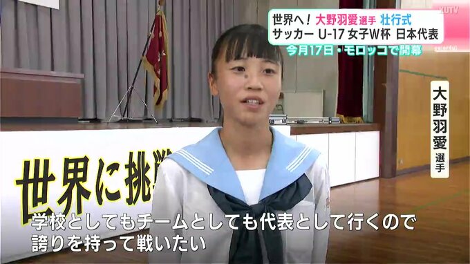 10月アフリカのモロッコで開催されるFIFA U-17女子ワールドカップに高知高校の大野羽愛(おおのうあ)選手が出場します。2日、出発を前に壮行式が行われました。