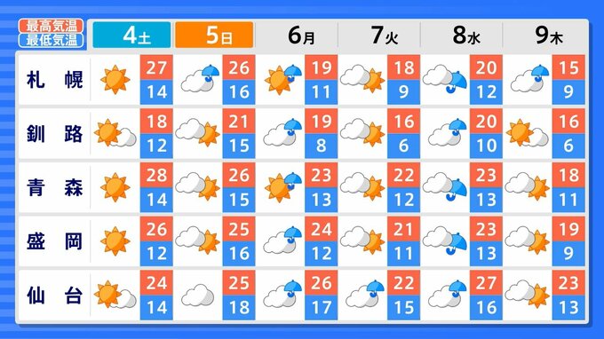 関東甲信、北陸、東海、近畿、中国、四国、九州などでは10月8日頃から、この時期としては10年に一度程度しか起きないような「著しい高温」となる可能性 北海道では10月9日頃から、この時期としては10年に一度程度しか起きないような「著しい低温」となる可能性 気象庁が発表 4時間前