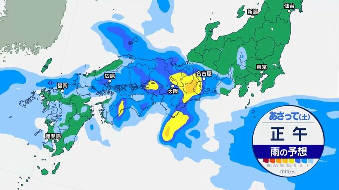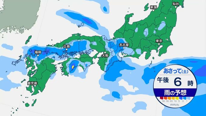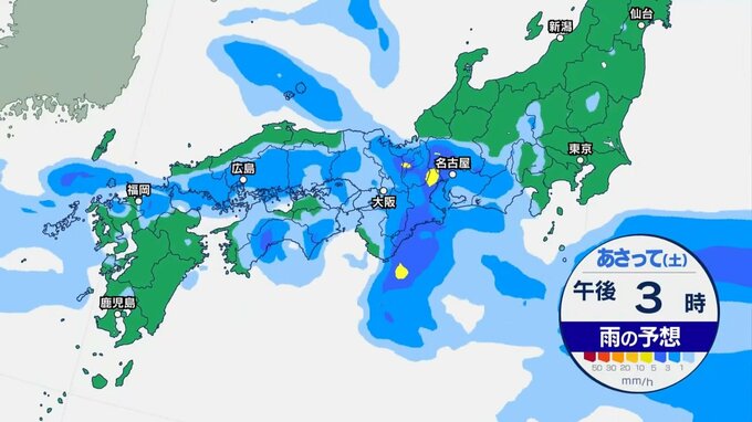 西日本では、土曜日も広い範囲で雨が降り、日曜日も中国・四国地方などで雨が降るでしょう。東日本や北日本では、土~日曜日は晴れる所が多い見込みですが、土曜日は関東や東海の一部でパラパラと雨が降る所がありそうです。そして、月曜日は北陸や東北・北海道で雨が降るでしょう。そして、名古屋はこの先一週間も25℃以上の夏日が続き、東京も月曜日までは夏日となる予想です。