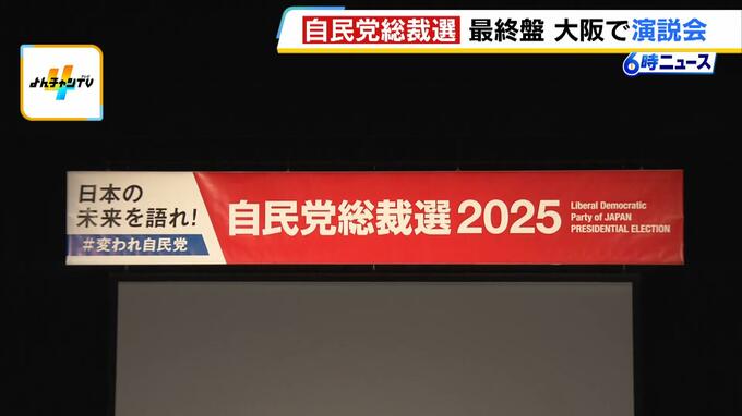 投開票が2日後に迫った自民党総裁選。10月2日、大阪で候補者の演説会が開かれました。 総裁選期間中、最後となる演説会には、抽選で選ばれた一般の人や自民党員など約800人が詰めかけました。演説会には高…