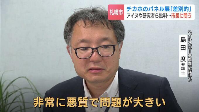 島田度弁護士はパネル展について、特定の民族を排除したり危害を加えたりすることを禁じたヘイトスピーチ解消法を適用するのはハードルがあると指摘します。