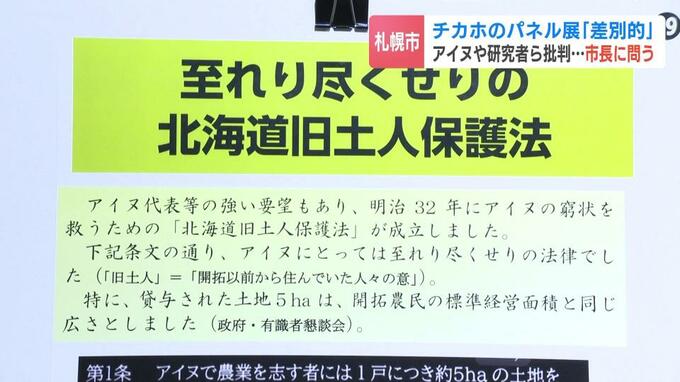 9月30日、札幌アイヌ協会は歴史を歪曲した差別的な展示だとして今後、許可しないよう札幌市に要請しました。