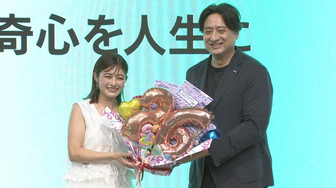 イベント当日は井上さんのお誕生日。サプライズでポップコーンブーケの花束を手渡されると “映画のメイキングでお菓子の花束をもらっていて。ちょうどさっきこれいいですね。と話してたところなんです” と感激していました。