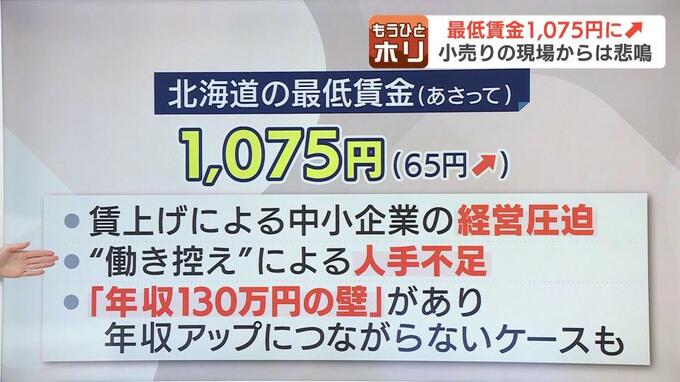 道内の最低賃金が4日から、現在の1010円から65円アップして1075円に引き上げられます。労働者側にとっては喜ばしいことですが、懸念もあります。
