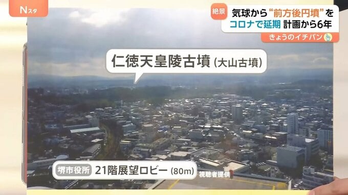 大阪府堺市で「仁徳天皇陵」と伝えられる、世界最大の古墳「大山古墳」を上空から眺めるための気球の運行が4日から始まります。