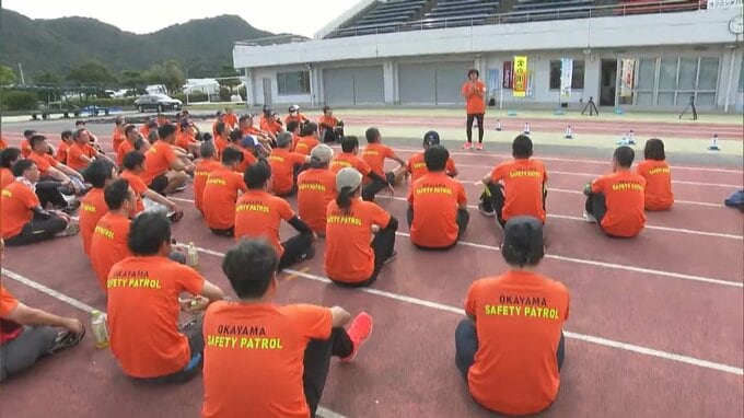 市民に、ランニングやウオーキングの際にTシャツを着てもらうことで防犯活動につなげてほしいと備前警察署などが行っている取り組みです。6月に日本陸連会長に就任した有森裕子さんも駆けつけ、ランニングやけがの予防について指導しました。
