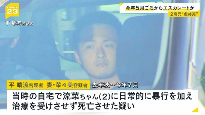 和歌山市で2歳の長女を虐待し死亡させたとして両親が逮捕された事件で、両親が「ことし5月ごろから虐待がエスカレートした」という趣旨の供述をしていることが分かりました。 平晴流容疑者(26)と妻の菜々美…