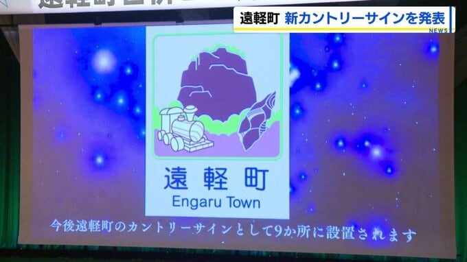 新しいカントリーサインは、コスモス畑の真ん中に遠軽町のシンボル「瞰望岩」、その脇に木のおもちゃの蒸気機関車と「黒曜石」がデザインされ、合併前の各町村の歴史と文化を感じられることが評価されました。