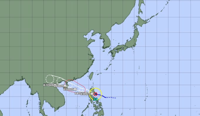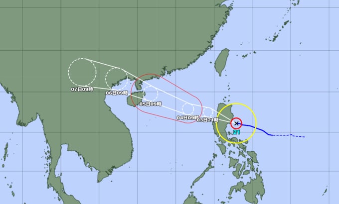進行方向、速さ 西北西 20 km/h (11 kt)