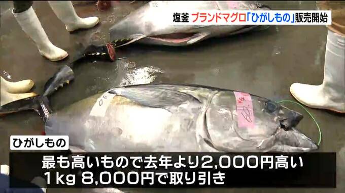 秋口から年末にかけて塩釜港に水揚げされるブランドマグロ「三陸塩竈ひがしもの」の販売が10月3日から始まりました。
