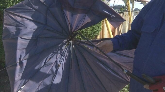 押し倒されたあと、男性は手に持っていた傘を必死に振り回しながら大声を出して動物を追い払いました。動物が西の方に立ち去って、街灯に照らされた時に、初めてクマと分かりました。クマと対峙した時に持っていた傘は、くの字に折れ曲がっていました。