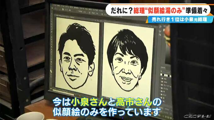 「小泉さんと高市さんが優勢で、林さんが追いかけている状況なので、今は小泉さんと高市さんの似顔絵のみを作っています」
