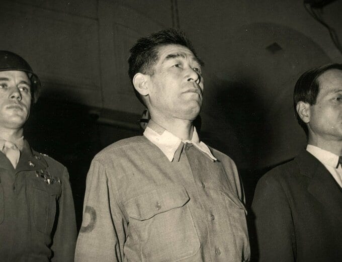 米国の国立公文書館には横浜軍事法廷の写真が収蔵されている。「最後の学徒兵 BC級死刑囚・田口泰正の悲劇」(1993年 講談社)を著したジャーナリストの森口豁さんから、現地で複写した石垣島事件関係の写真を見せていただいた。この中に、警護する米兵と弁護士に付き添われて判決を宣告されている一人ずつの被告の写真が三十数枚あった。判決日には45名いたはずなので、全員分はない。実際、この連載の主人公、28歳で死刑執行された藤中松雄の写真はなかった。しかも写真の裏に貼られたキャプションは、違う人の名前ばかりで、誰が写っているのか分からない状態だった。国会図書館の個人データを手掛かりにして、写真にうつる人物を特定したかったのだ。