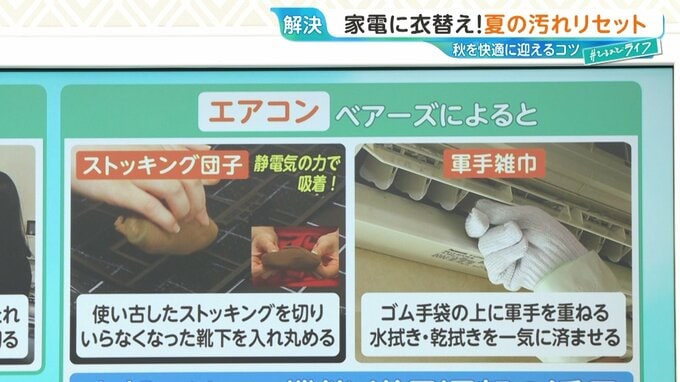 汚れたフィルターの汚れを簡単に落とせるのが「ストッキング団子」。