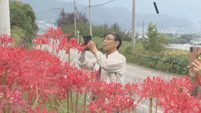 園内には市内のボランティア団体が約10年前に植えたヒガンバナが見頃を迎えました。