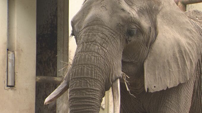 熊本市動植物園が飼育しているアフリカゾウの「マリー」と「エリ」。推定で45歳と44歳の2頭が健康に暮らせる理由は、阿蘇の雄大な草原にあるといいます。10月3日、阿蘇西小学校の児童たちがゾウに与えていた草は「…