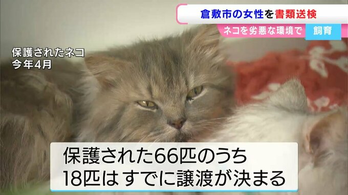 倉敷市保健所によりますと、保護された66匹のうち18匹はすでに新たな飼い主への譲渡が決まっているということです。