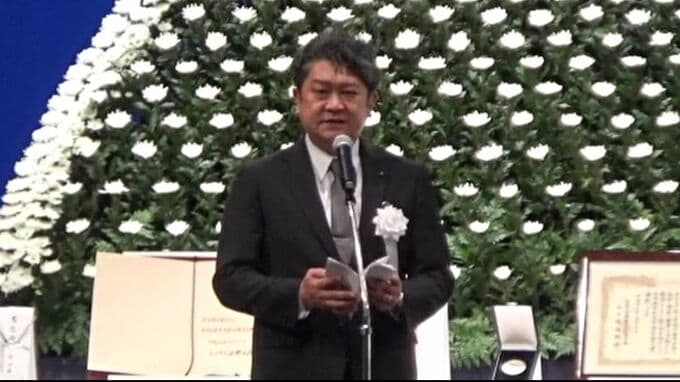 式辞・村山卓金沢市長「誰よりも金沢に深い愛情を持ち、常に将来を見据え、市政の発展に尽くされた足跡は計り知れず、その姿勢はいまの市政を預かる者として引き継いでいかなければならないと強く感じている」