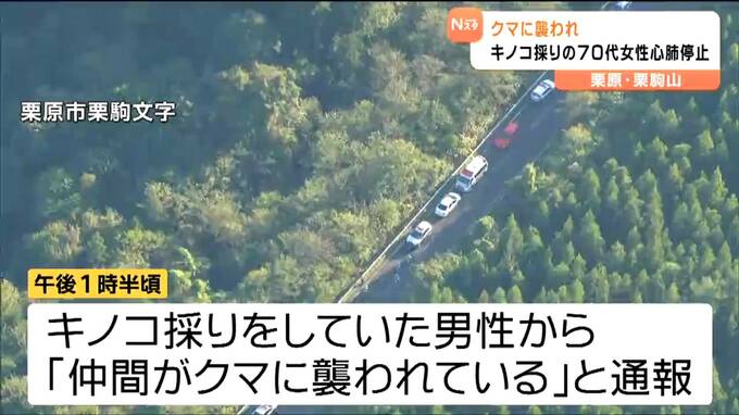 警察や消防によりますと、男性らは4人でキノコ採りをしていて70代の女性がクマに襲われ頭などから血を流すなどし心肺停止の状態だということです。