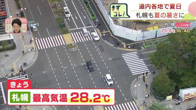 札幌の最高気温は28.2度まであがり、午後4時40分の時点でも25.4度でした。