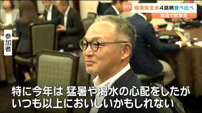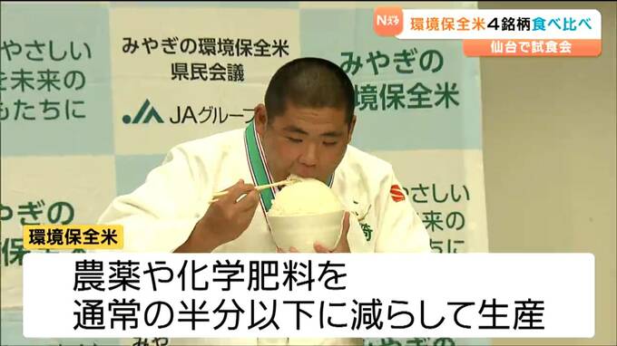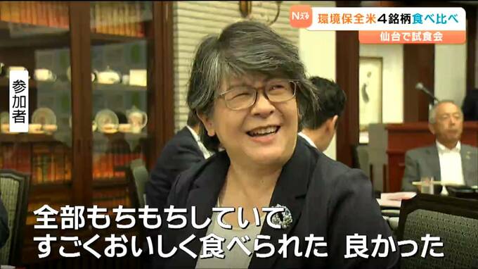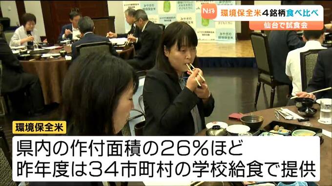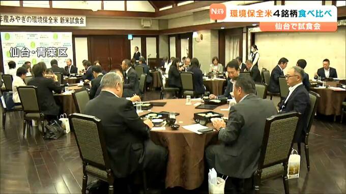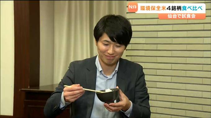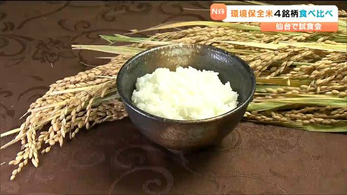 農薬や化学肥料の使用を抑えて生産された「環境保全米」の新米の試食会が10月3日、仙台で開かれました。