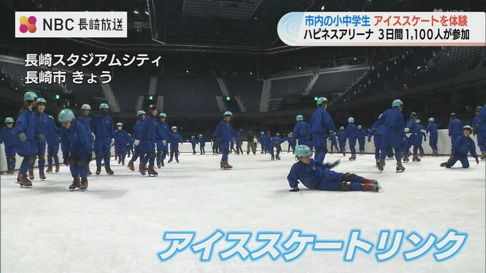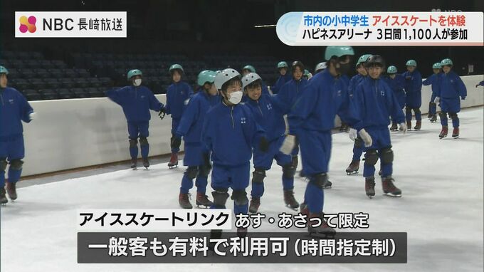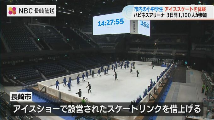 長崎市のハピネスアリーナに期間限定で作られたアイススケートリンクです。3日まで市民に開放されアイススケートを体験できる機会があまりない長崎市内の小中学生がスケートを楽しみました。