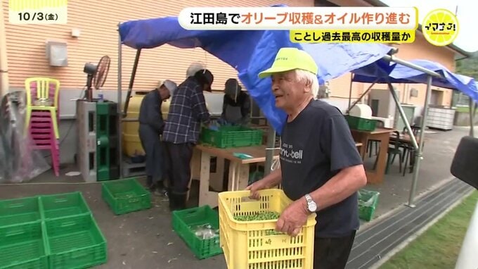 「今年はいいですよ。過去、最高の量が獲れるんじゃないですか。最初からね、地中海と瀬戸内海の気候が似ているということでオリーブ事業初めてのでそこは合っているんだと思うんですけど」