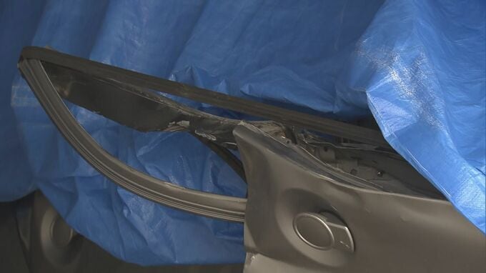 「車の右側面が大きく破損していて、事故の衝撃がわかります」