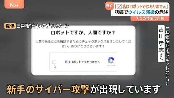 「『私はロボットではありません』のような偽のメッセージを表示させる、新手のサイバー攻撃が出現しています。そのサイバー攻撃の名前は『クリックフィックス』と呼ばれています」