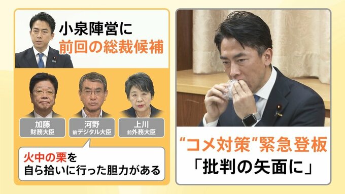小泉陣営には、加藤財務大臣、河野前デジタル大臣、上川前外務大臣と、前回の総裁選に出馬した3人の大きなバックアップがある状況です。