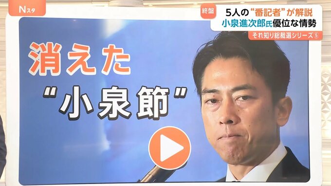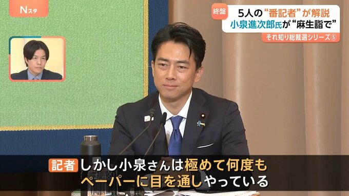 記者からは、「他の候補が、ほとんどペーパーを見ないで喋っている。しかし小泉さんは、極めて何度もペーパーに目を通してやっている」「相当慎重にやらなければいけないということなのでしょうけど、まだ44歳でしょう?そんな慎重過ぎてどうするんですか!」と指摘を受ける一幕もありました。
