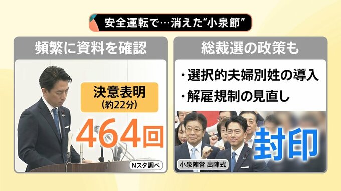 “小泉節”どこへ? 手元の資料を3秒に1回のペースで確認